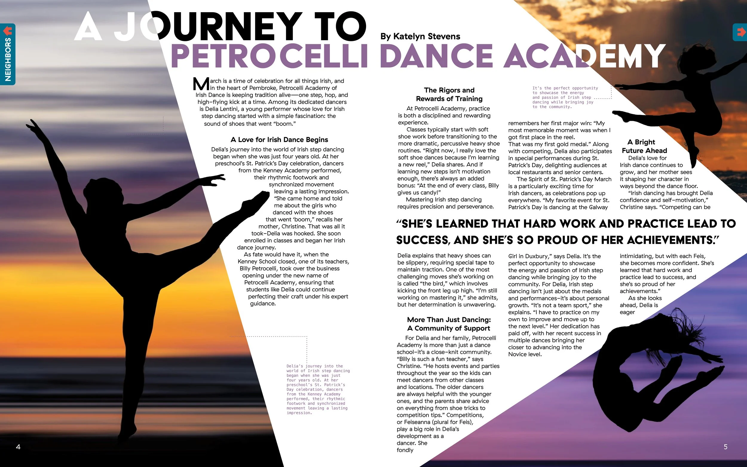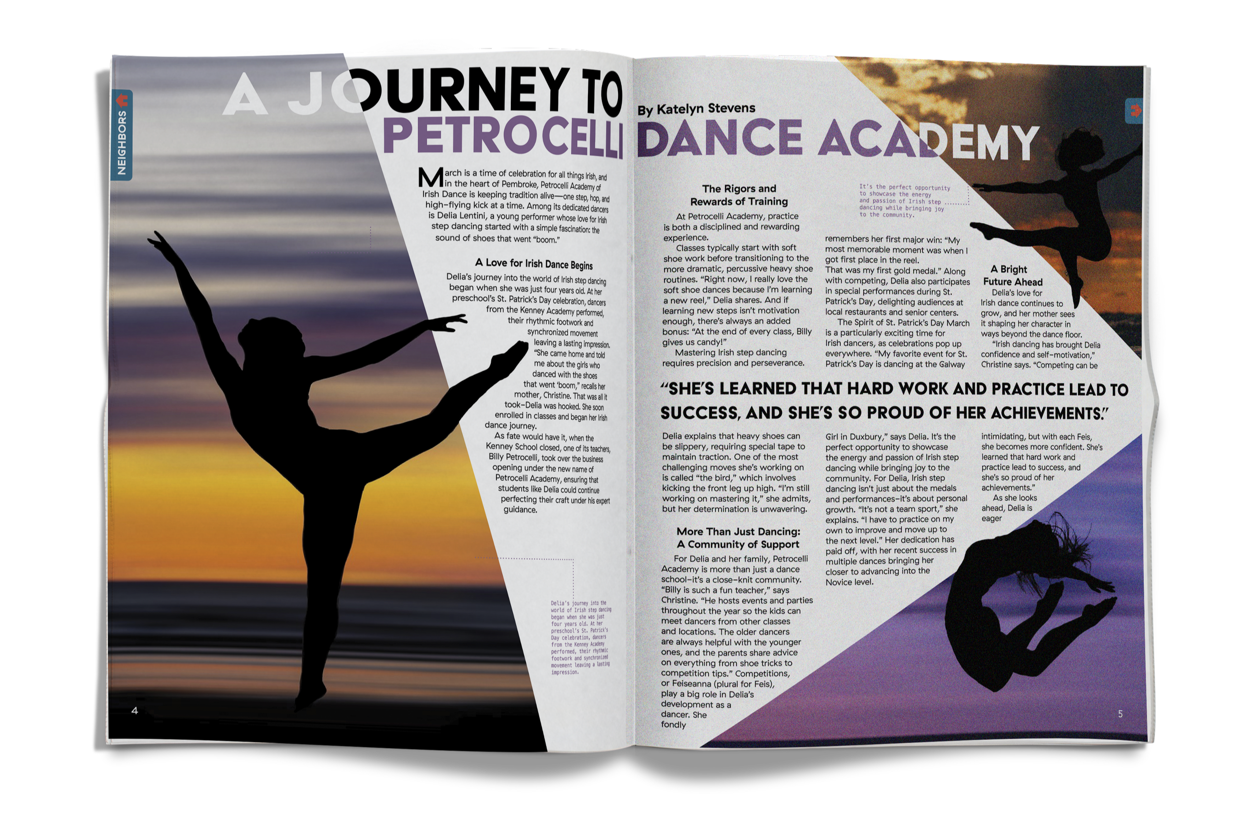 The redesign of the local magazine Duxbury Neighbors focused on modernizing the layout and imagery and creating a more cohesive publication.