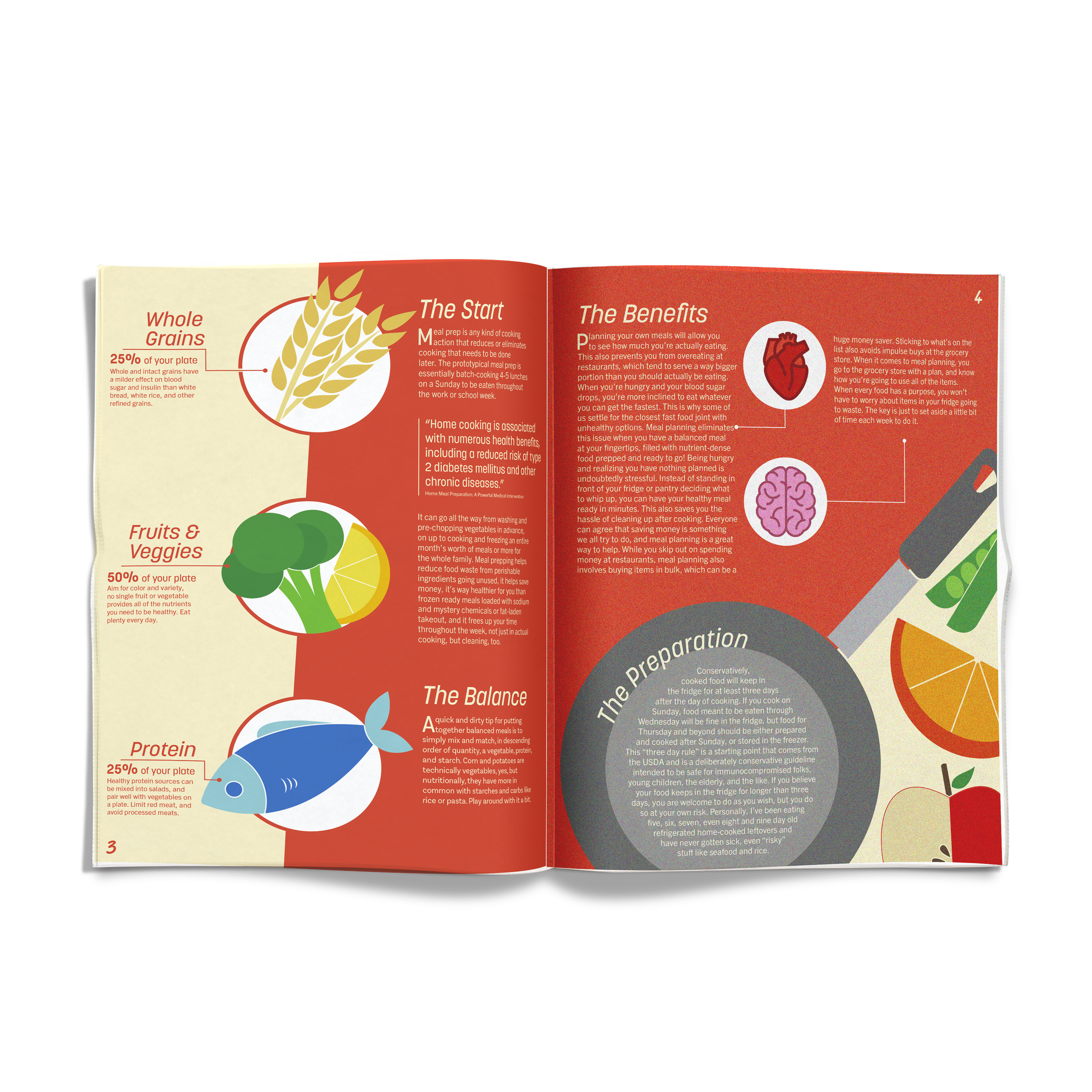 The main off white background was meant to create a rustic and handmade feel while the secondary red was used to create high contrast.